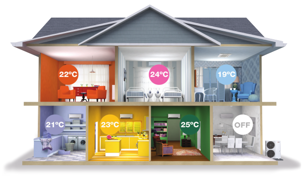 Zoning means different temperatures are maintained in different places dependent on your need. For example, in the summer, if you have zoning air conditioning you can reduce the amount of cool air delivered to your bedroom during the daytime when not needed and deliver more cool air to the kitchen and family room that is currently being occupied. You can then reverse this in the evening when you require cooling in your bedroom. Ductless systems provide the same comfort because each unit in each room has an evaporator and each room temperature can be controlled separately.